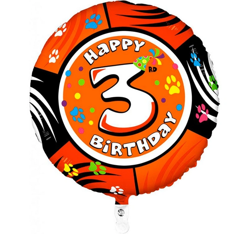 Kulaté fóliové balónky s číslicí 3 a veselými dětskými motivy jsou vhodné na oslavy narozenin.