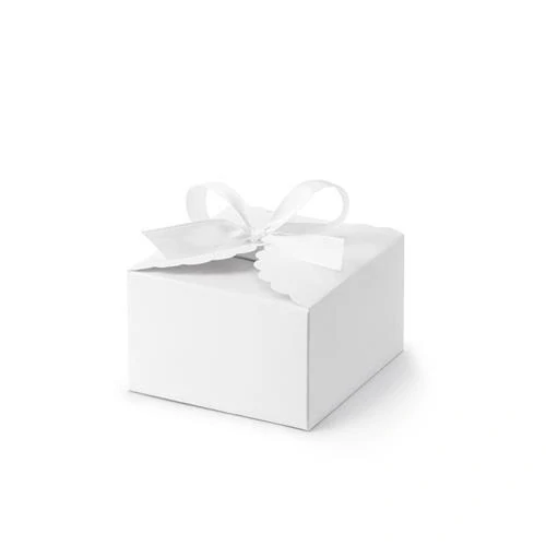 Dárkové svatební krabičky bílé s mašličkou - 10 ks