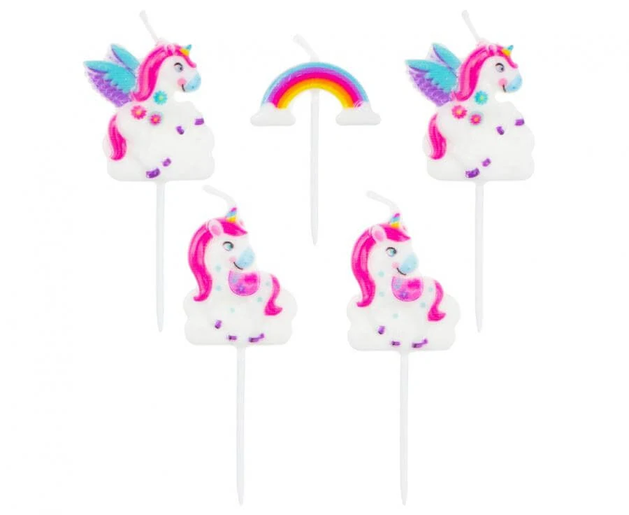 Dortové svíčky Duhový Jednorožec 5 ks