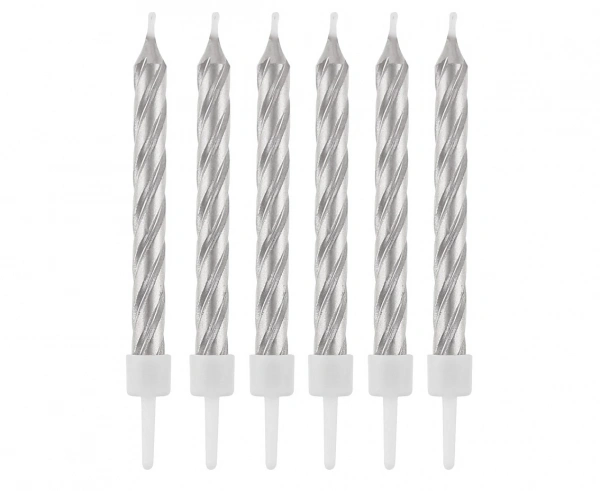 Dortové svíčky ve stříbrné barvě, vhodné na oslavy narozenin, výročí i jiné party.