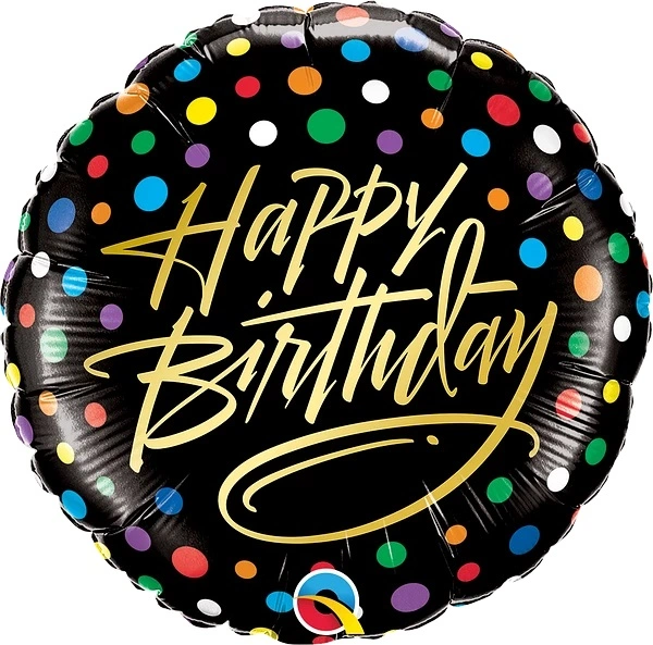 Fóliový balónek ve tvaru kruhu v černé barvě s puntíky a nápisem HB.