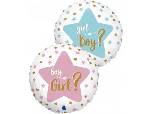 Fóliový balónek růžový/modrý s nápisem Boy or girl?
