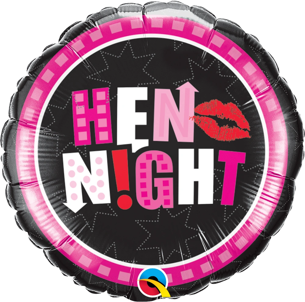 Fóliový balónek ve tvaru kruhu v růžovočerné barvě a potiskem Hen night - Dámská jízda!
