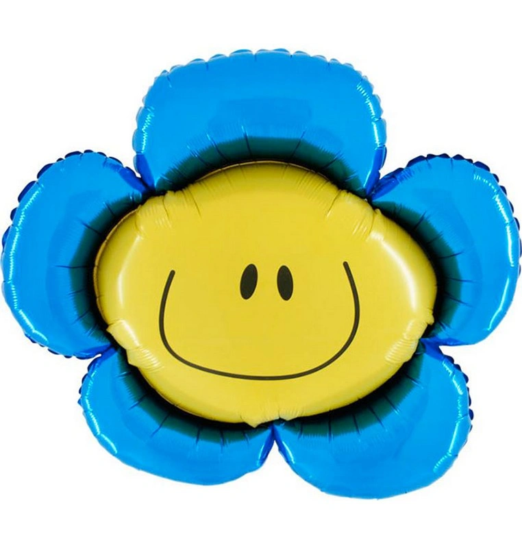 Fóliový balónek květiny s úsměvem v modré barvě.
