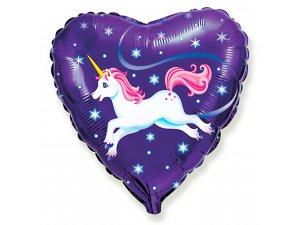 Fóliový balónek ve tvaru srdce s motivem jednorožce, 46cm.