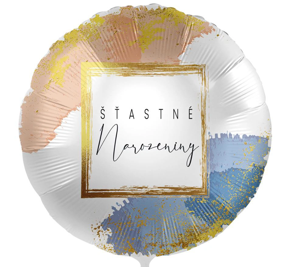 Prémiový fóliový balonek s plnobarevným potiskem z obou stran s nápisem Šťastné narozeniny.