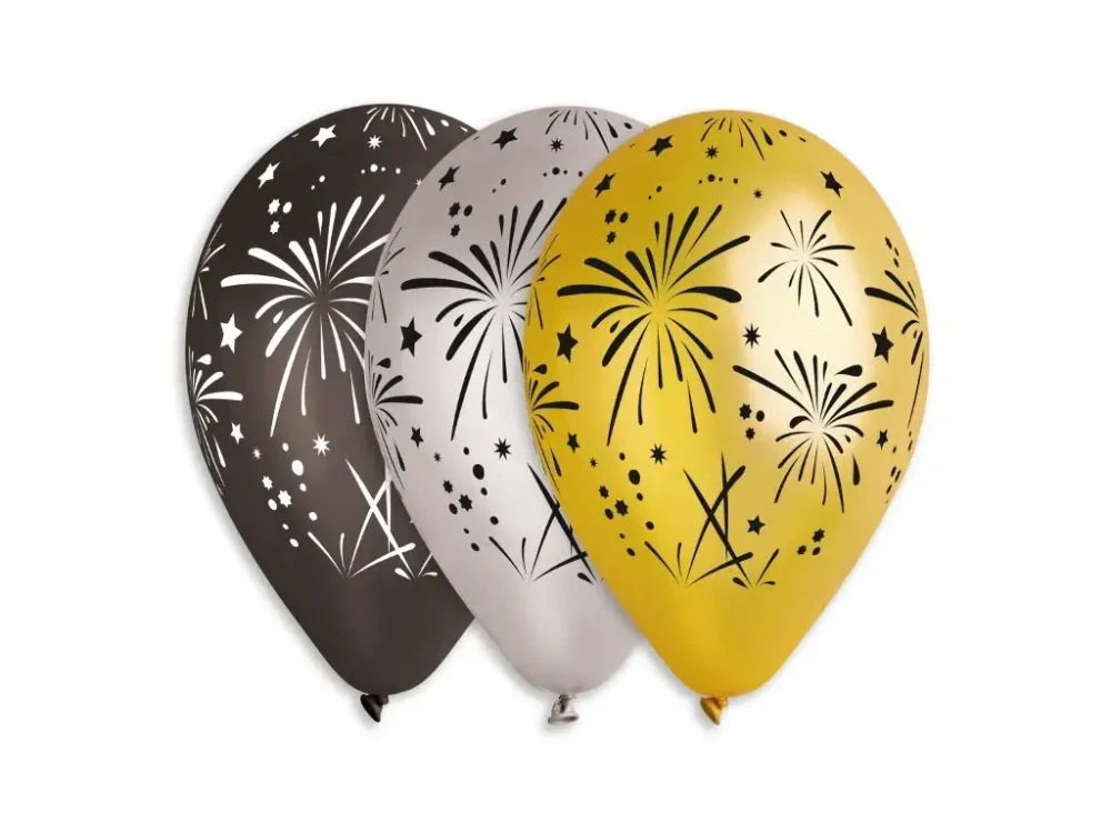 Latexový balonek s metalickým potiskem ohňostroje dodá každé oslavě slavnostní, moderní a zářivý vzhled. Kombinace elegantních barev jako je černá, zlatá a stříbrná vytváří luxusní efekt, který se dokonale hodí pro večerní párty, vánoční večírky i velkolepé novoroční oslavy. Metalický povrch balonku se krásně leskne a motiv ohňostroje dodává dekoraci dynamiku a atmosféru velkého okamžiku.