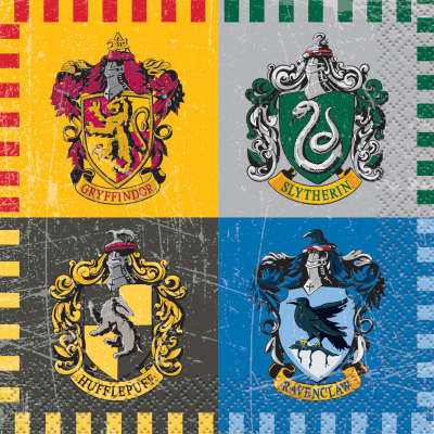 Party papírové ubrousky s motivy kolejí z Harryho Pottera- vhodný doplněk na tématickou oslavu. Doporučujeme zakoupit společně s dalším zbožím na tuto tématickou party.