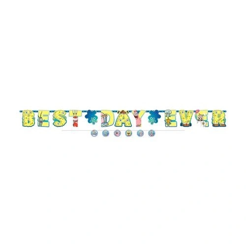 Narozeninový banner s motivem SpongeBob a nápisem Best Day Ever. Jednoduchá, ale o to více efektní závěsná dekorace, která se hodí na každou narozeninovou oslavu.