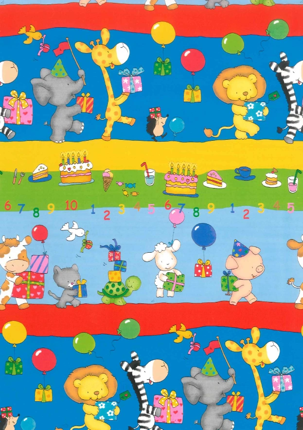 Kvalitní balící papír na dárky s motivem zvířatek s dárky.