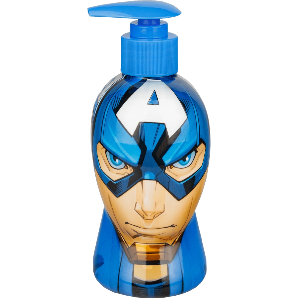 2v1 šampon a pěna do koupele jako 3D postava hlavy hrdiny Avengers Kapitána Ameriky.