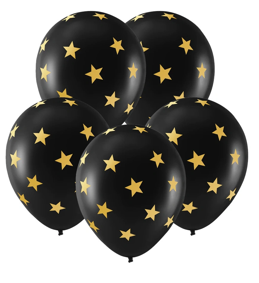 Sada latexových balonků černých s potiskem zlatých hvězdiček. Tato sada balonků nabízí univerzální výzdobu, která se hodí na jakoukoliv oslavu nebo narozeninovou párty.