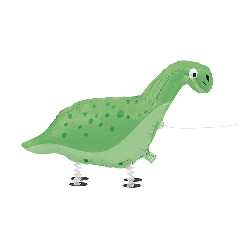 Foliový balónek ve tvaru dinosaura s papírovými nohami, tento balónek je určen pro pomyslnou chůzi.