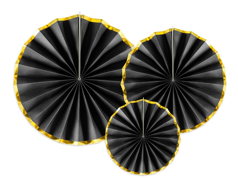 Dekorační rozety "Černé se zlatými okraji" 3ks