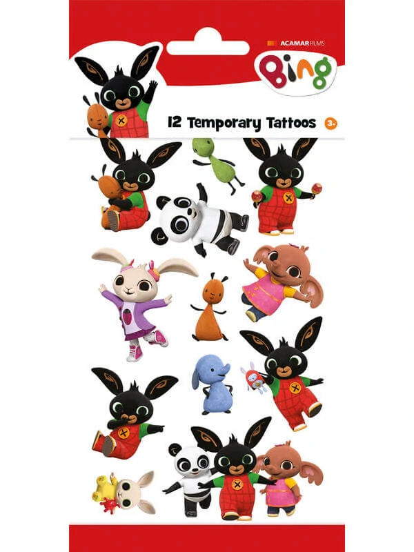 Dočasné tetování s motivem králíčka Binga a jeho přátel jako třeba Sula a Flop, které si děti zamilují! Dětské tetovačky dodají vašim oslavám hravý nádech. Snadno aplikovatelné a bezpečné pro děti, tato dočasná tetování jsou ideální pro zábavu, oslavy nebo jako originální dárek. Tetovací obtisky jsou moderním hitem, které miluje téměř každé dítě.