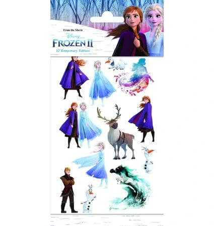 Dočasné tetování s motivem pohádky Frozen 2 a duem oblíbených sester Elsy a Anny, které si děti zamilují! Dětské tetovačky dodají vašim oslavám hravý nádech. Snadno aplikovatelné a bezpečné pro děti, tato dočasná tetování jsou ideální pro zábavu, oslavy nebo jako originální dárek. Tetovací obtisky jsou moderním hitem, které miluje téměř každé dítě.