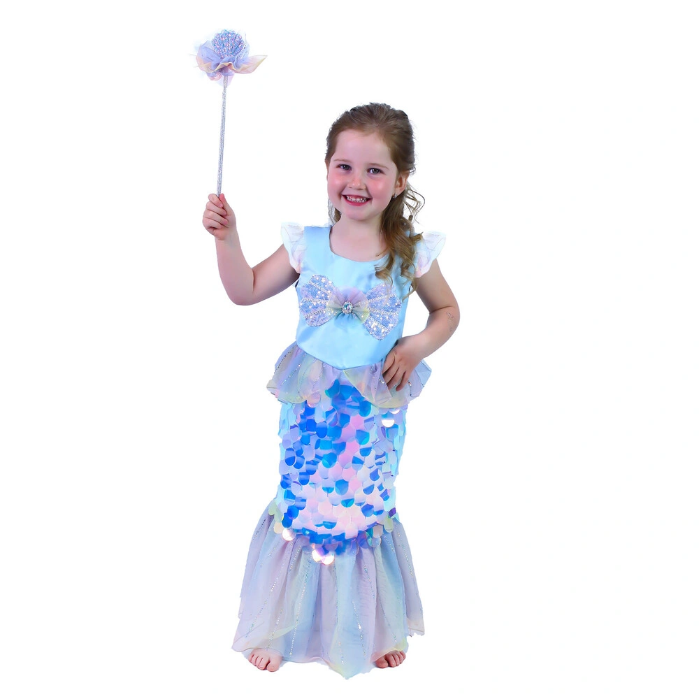 Balení obsahuje: exkluzivní šaty, které jsou zdobeny flitry, které vypadají jako šupiny, hůlku