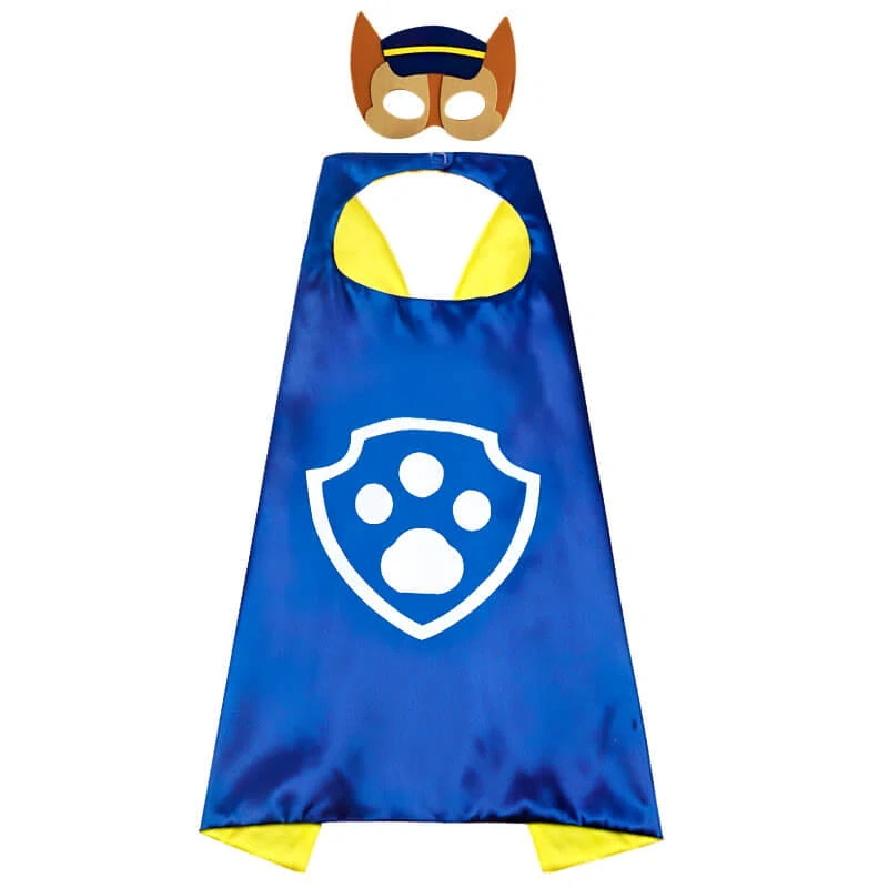 Součástí kostýmu je modrý plášť s výrazným policejním odznakem, doplněný o světlou žlutou podšívku, která kostýmu dodává hravý kontrast a působí věrně k seriálové postavě. V balení najdete také masku v designu Chase, díky které děti snadno získají typický psí výraz svého oblíbeného hrdiny.
