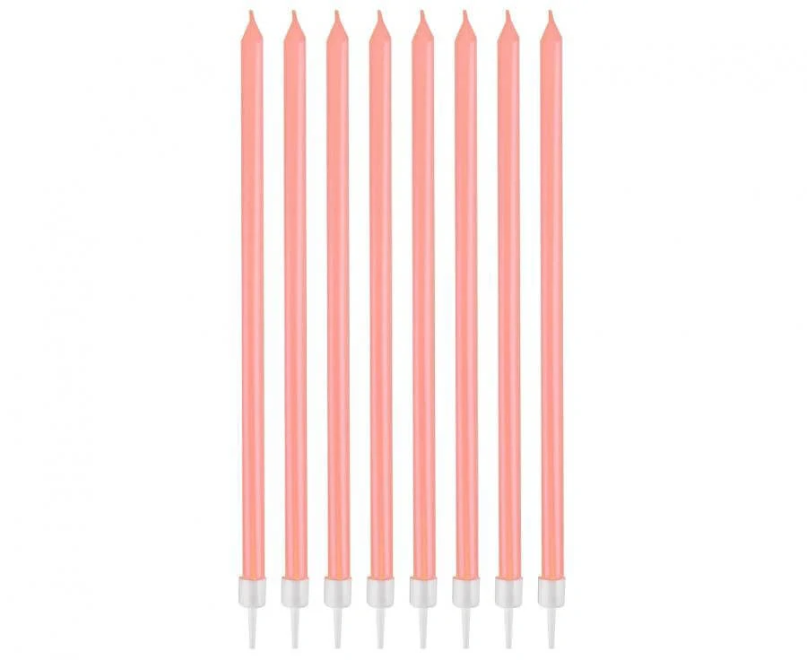 Dortové svíčky s držátky růžové metalické - 8 ks