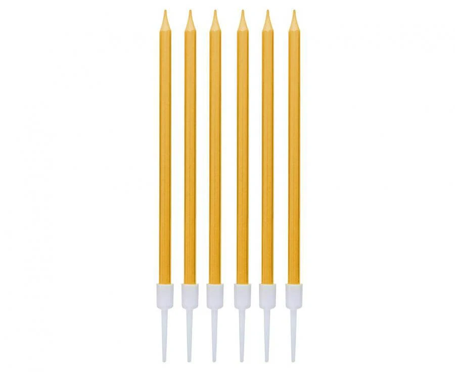 Dortové svíčky s držátky zlaté metalické - 6 ks
