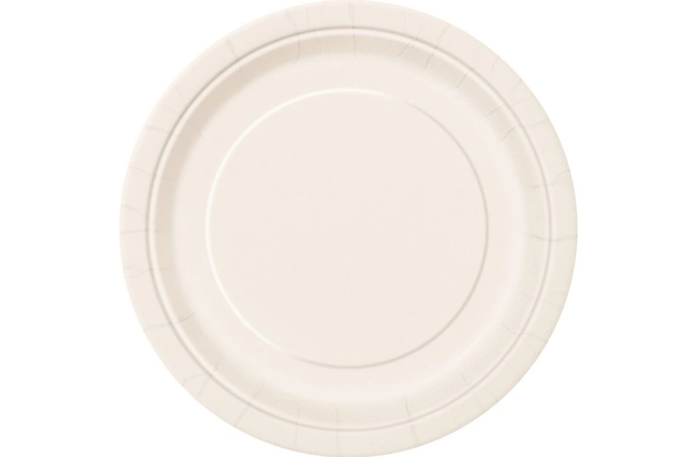 Sada dvaceti papírových talířků o průměru 18cm v barvě slonová kost.