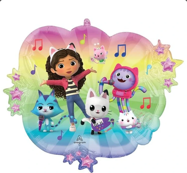 Fóliový balonek Gábinin kouzelný domek přináší veselou a hravou atmosféru na každou oslavu. Balonek je ve tvaru barevného obláčku s motivem Gábi a jejich kamarádů. Je to skvělá dekorace pro malé fanoušky seriálu, která okamžitě rozzáří celý prostor. Lze jej použít jako dekorace na narozeninové oslavy, tematické party nebo s ním někomu udělat radost jako milým dárečkem.