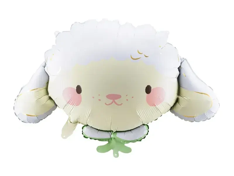 Foliový balonek ve tvaru hlavy ovečky. Ovečka má na krku zelenou mašličku.Tento roztomilý balonek je ideální dekorací na Velikonoce nebo na jakoukoliv jinou dětskou párty a oslavu.