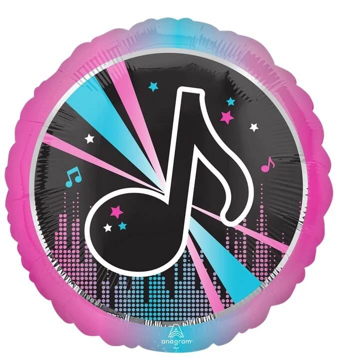 Dodejte své oslavě rytmus s tímto stylovým hudebním fóliovým balónkem. Dominantní černá nota na tmavém pozadí s růžovo-modrými akcenty zaujme na první pohled a perfektně zapadne do výzdoby pro každého hudebního nadšence.