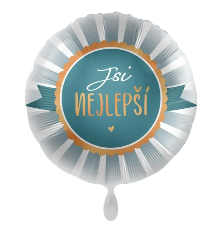 Fóliový balonek s českým nápisem "Jsi nejlepší" v elegantním provedení. Skvěle doplní váš dárek k narozeninám, svátku, nebo potěší jenom tak pro radost. Díky modré barevné kombinaci se obzvláště zalíbí mužům.