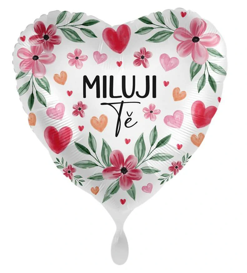 Fóliový balonek ve tvaru srdce s nápisem Miluji tě a potiskem květů a srdíček je krásná dekorace plná lásky a emocí💕. Ideální na oslavy, jako valentýnský dárek nebo milé romantické překvapení.