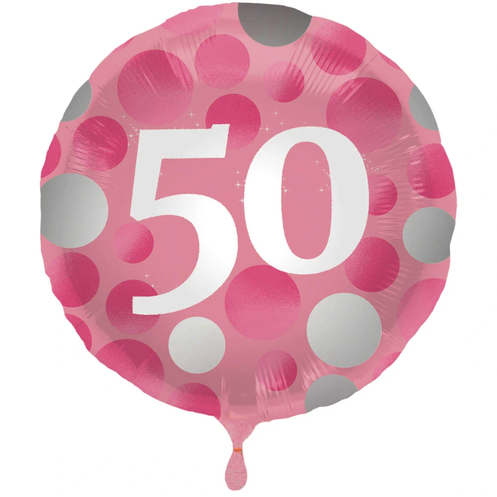 Fóliový balonek růžové puntíky 50. narozeniny 45 cmSkladem49 Kč/ ks40 Kč bez DPH