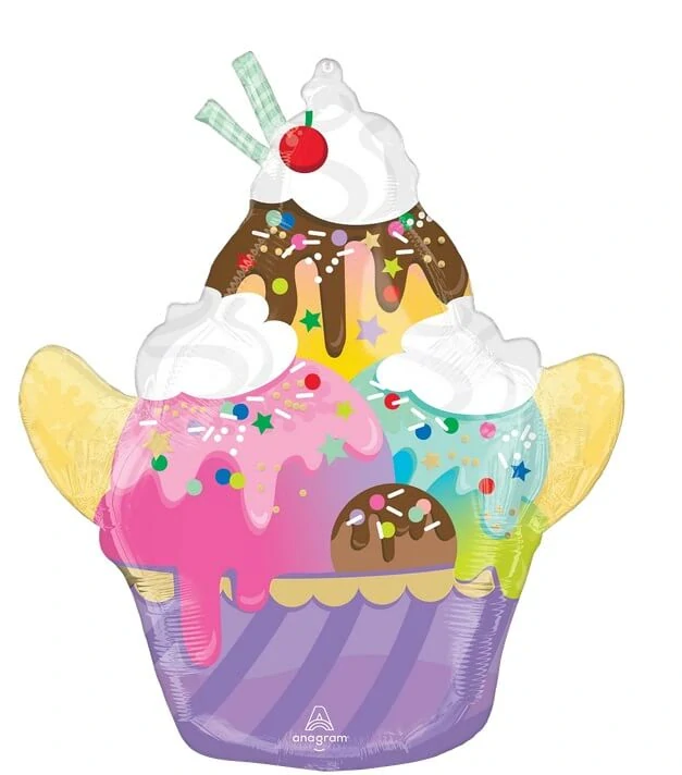 Proměňte svou oslavu v sladký ráj s tímto výrazným fóliovým balónkem ve tvaru obří pohárové zmrzliny. Kombinace růžové, modré, žluté a čokoládové polevy, šlehačky, posypu a třešinky na vrcholu vytváří hravý a veselý design, který okamžitě upoutá pozornost. Balónek je ideální na dětské narozeninové párty, letní oslavy, candy bar tématické akce nebo jako originální dárek. Perfektní doplněk do fotokoutku i jako dominantní dekorace místnosti.