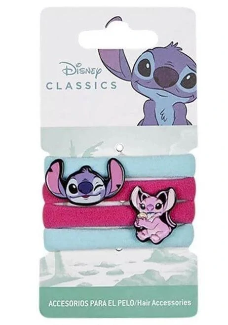 Roztomilá sada 4 dětských gumiček inspirovaná oblíbenou pohádkou Lilo & Stitch potěší všechny fanoušky modrého mimozemšťana. Gumičky v růžovo-fialových a modrých odstínech zdobí detailní obrázky postaviček Stitch a Angel, které dodají účesu hravý a originální vzhled.