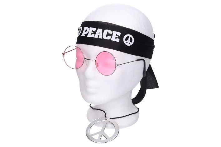 Retro párty a téma 80. let jsou velkým hitem a proto se Vám bude skvěle hodit tento set s ikonickými kulatými brýlemi a náhrdelník se znakem Hippies.