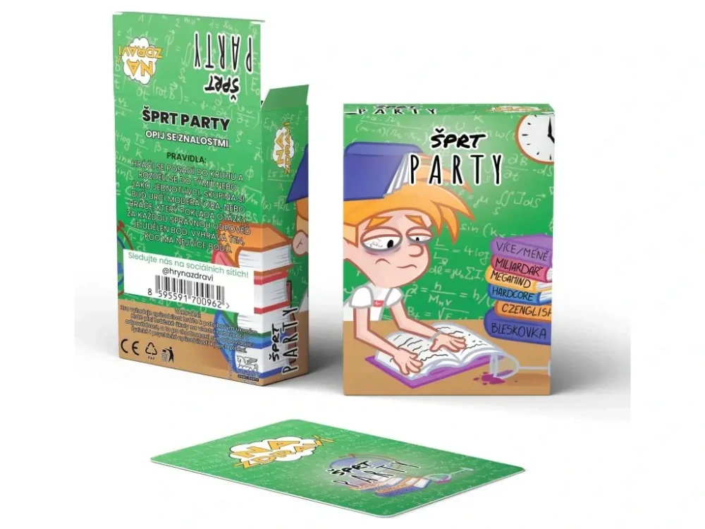 Chceš si otestovat svoje znalosti a zároveň se pořádně pobavit? Šprt PARTY Reloaded je chytrá a zároveň uvolněná hra, která funguje jak na bláznivé večírky, tak na klidné rodinné posezení. Stačí vzít karty, vybrat moderátora a začít chrlit odpovědi.
