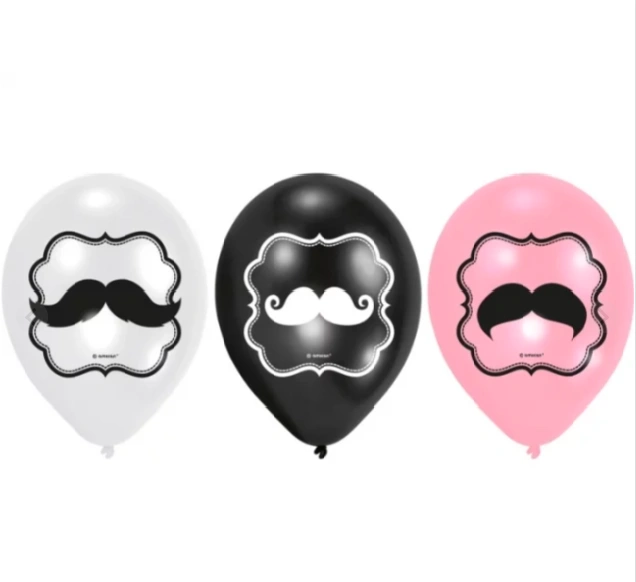 Sada latexových balonků s motivem knírů v černé, bílé a růžové barvě. Skvělá dekorace každé oslavy.