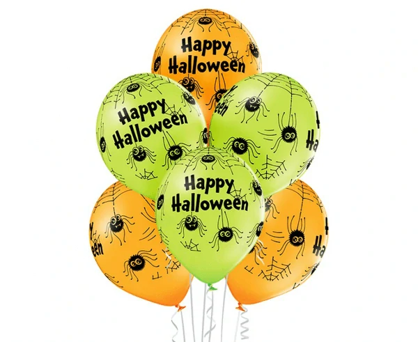 Latexové balonky Halloween s potiskem pavouků s nápisem Happy Halloween se strašidelno veselým dojmem je tou pravou dekorací na halloweenskou výzdobu. Jednoduchá dekorace, ale rozhodně významově dominantní pro pořádnou halloweenskou párty! Navíc ve skvělých barevných provedeních jako zelené a hlavně oranžové s černým potiskem. Tato kombinace k halloweenu prostě patří stejně jako pavouci.🕷️