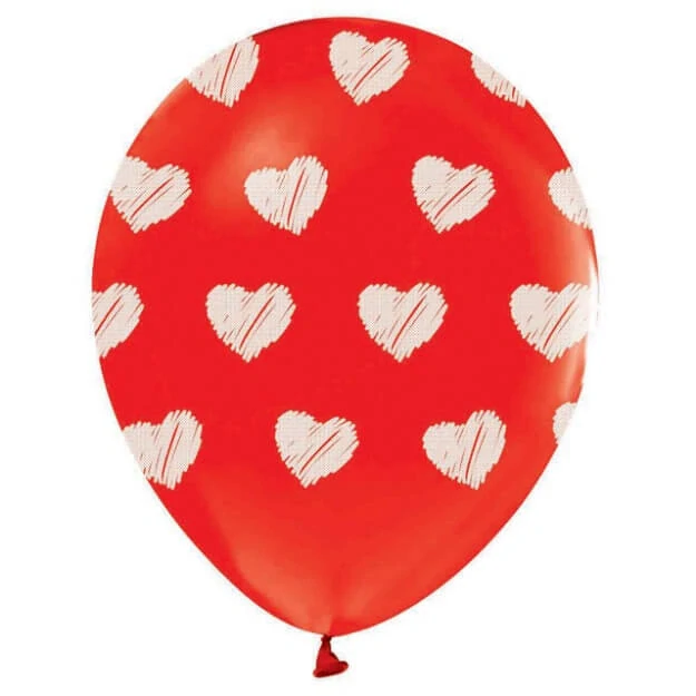 Latexový balonek červený se srdíčky 30 cmSkladem6 Kč/ ks5 Kč bez DPH