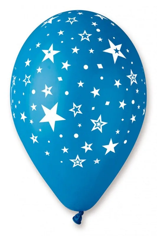Balonky latexové v pastelově modré tmavé barvě s motivem hvězd s bílým potiskem. Ať už na párty, ples, oslavu, nebo jenom pro radost. Tento jednoduchý balonek dokáže udělat spoustu parády.