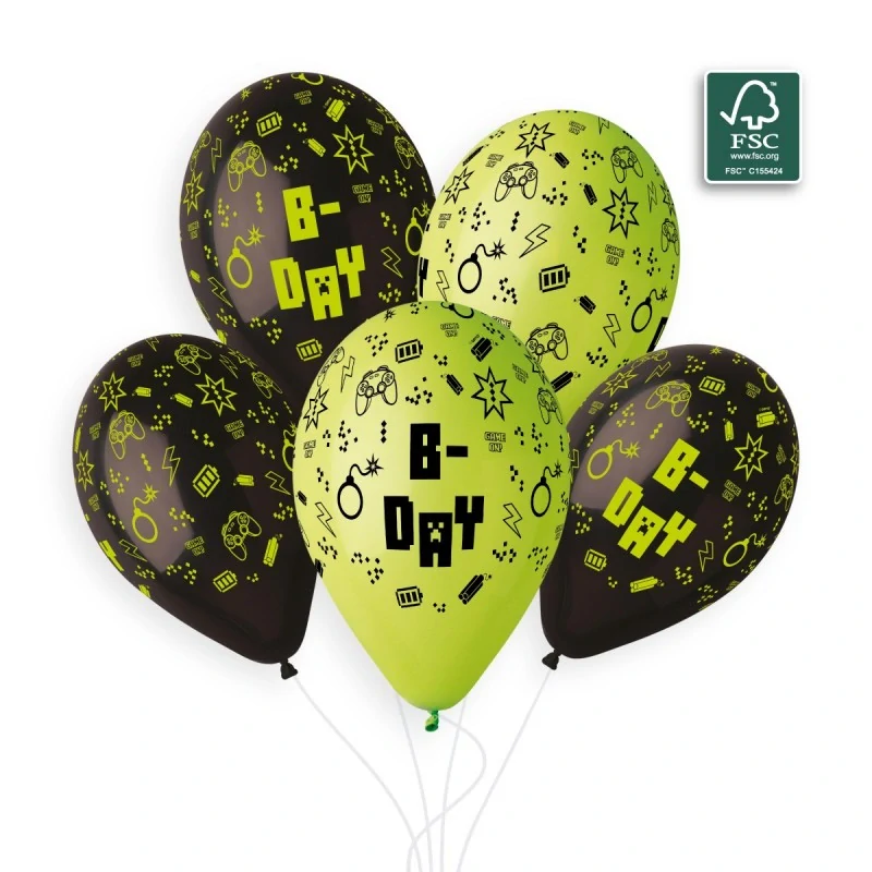 Latexové balónky v zelené a černé barvě s motivem Minecraft TNT a nápisem B-DAY. Ideální pro oslávu v tématu Minecraftu pro každého gamera.