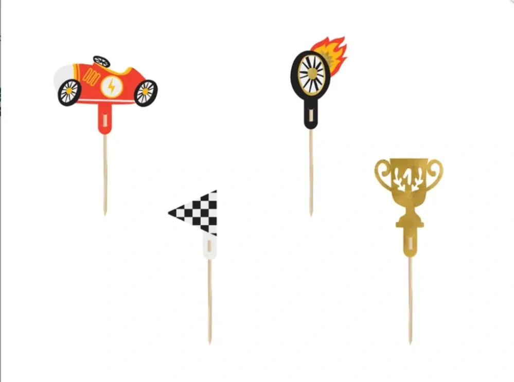 Napichovátka na dort, nebo muffiny v motivu trofeje, auta, kola a praporu z kolekce závodních aut jsou ideálním doplňkem k oslavě či párty pro všechny milovníky aut. Pořiďte si celou kolekci a budete mít narozeninovou nebo tématickou oslavu ve velké stylu.