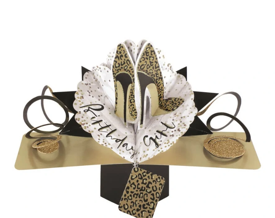 Narozeninové 3D přání Pop Up leopardí lodičky