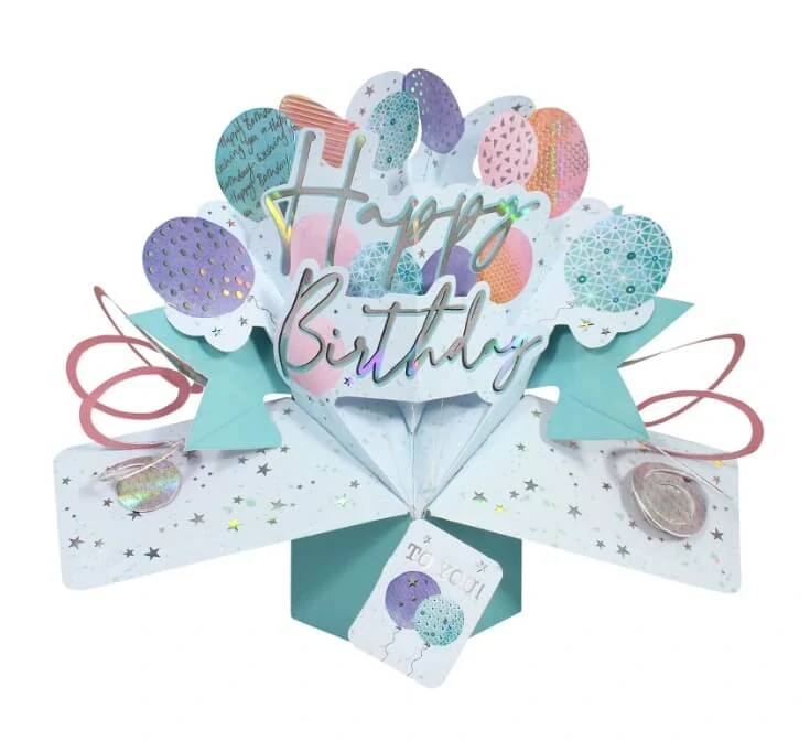 Narozeninové 3D přání Pop Up pastelové balónky