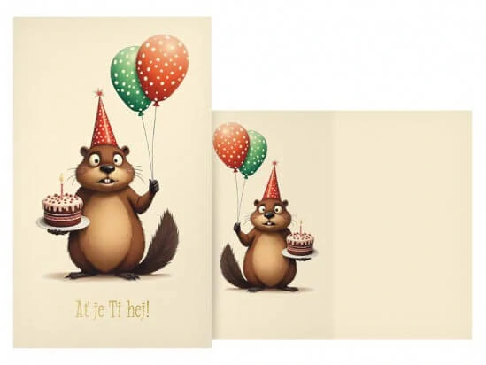 Narozeninové přání s motivem bobra a balónků přináší zábavný a veselý prvek na každou oslavu. Na přední straně přání najdete legrační ilustraci vyjeveného bobra s dortem a balónky, doplněnou nápisem „Ať je ti hej“, který vykouzlí úsměv na tváři oslavenkyně či oslavence. Barevný a hravý design přání je vhodný pro malé i velké, holky i kluky, a okamžitě navodí veselou a přátelskou atmosféru.