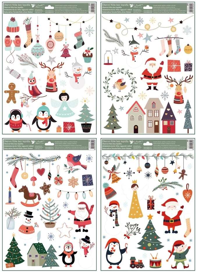 Okenní fólie s vánočními motivy a glitrem. Roztomilá vánoční dekorace, která udělá radost nejen vám, ale určitě zaujme všechny kolemjdoucí. Využití může najít i na tématické party.