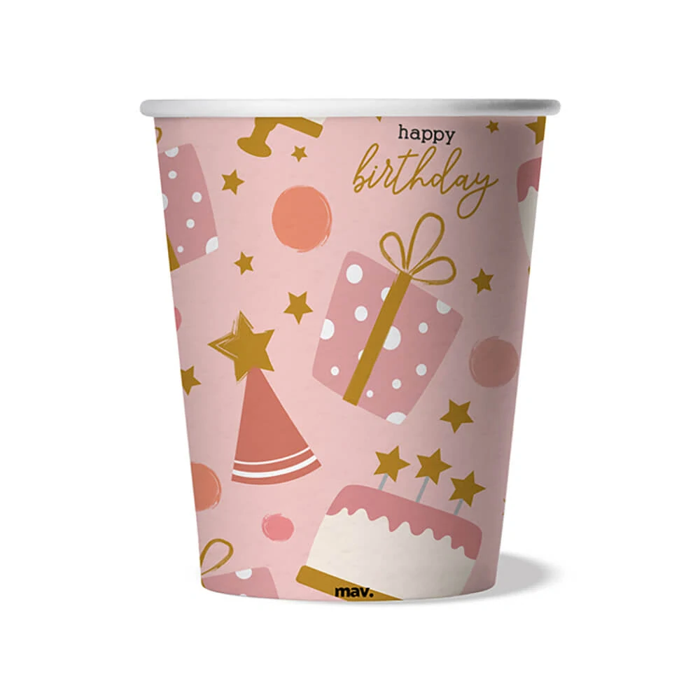 Papírové kelímky rosegold s dortovými motivy obohatí váš stůl o roztomilý a vkusný doplněk. Milé motivy dortu spolu s něžnou rosegold barvou dodá vaší oslavě na jemnosti. Oslavu pak můžete sladit s našimi produkty s podobným motivem či balónky s motivy narozenin, pohádek či zvířat.