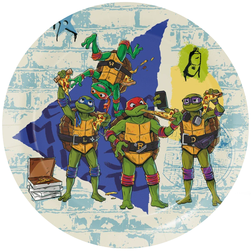 Papírové talíře v motivu zelených záchránářů Želv Ninja skvěle poslouží ať už na dort nebo jiné mlsky. Doladí to atmosféru a hned máte vyřešené stolovací dekorace.