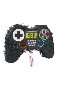Piňata v motivu černého videoherního ovladač s nápisem Level Up je skvělou volbou na narozeninovou oslavu, piňatu stačí naplnit sladkostmi, zavěsit a pak už si pouze užít srandu, která při snaze trefit ji bude.