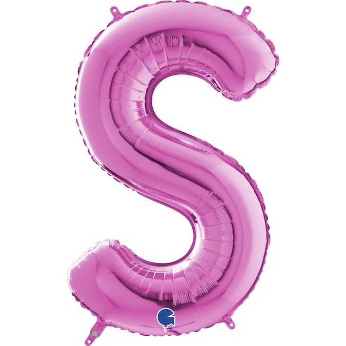 Fóliový balónek ve tvaru písmene S v růžové barvě. Balónek je ideální na oslavy, kde může znázornit spolu s dalšími písmeny jméno oslavence. Hodí se samozřejmně i na výročí a různé oslavy.