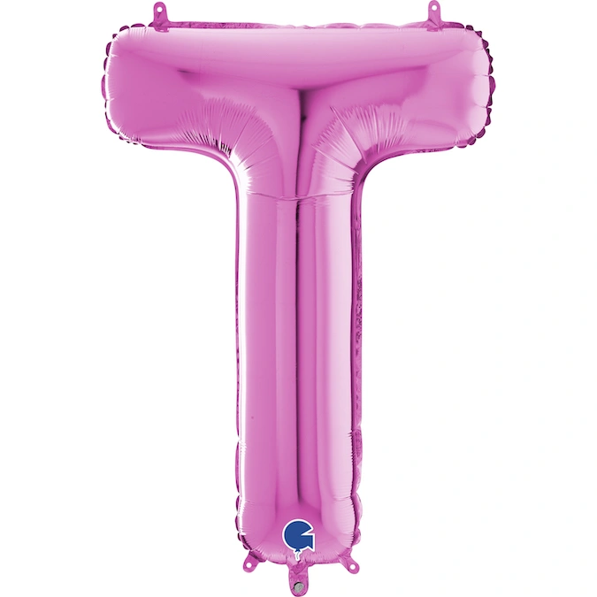 Fóliový balónek ve tvaru písmene T v růžové barvě. Balónek je ideální na oslavy, kde může znázornit spolu s dalšími písmeny jméno oslavence. Hodí se samozřejmně i na výročí a různé oslavy.
